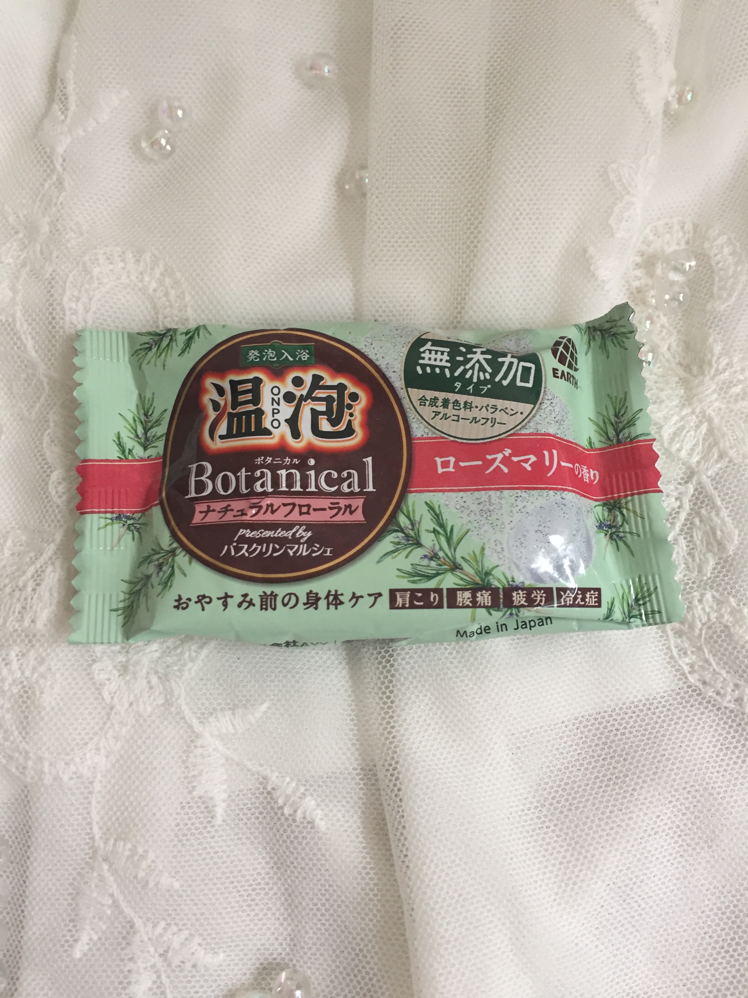 Botanical fizz is used to soften the skin while providing aromatherapy for a relaxing bath ailing stiff muscles and joints with its herbal scents. The scents in this box are (from left to right in the picture below) Rosemary ~Orange blossom ~Geranium blossom ~Lavender