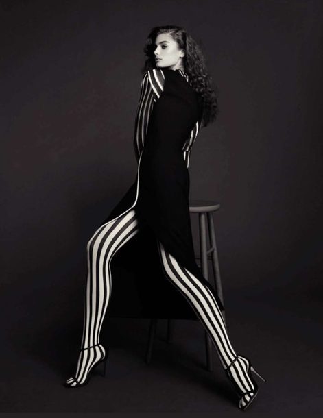 Striped tights can be your worst enemy or your best friend depending on which way they go. Stripes running horizontal will make your legs seem longer because it tricks the eye. Vertical lines stop the eye at each line cutting you leg shorter and shorter with each line. Not to mention it could end up looking like a bumble bee. Instead find vertical lines that are slightly diagonal or lines that are placed vertically to emphasize a certain part of the body. Stripe tights come with both thick and thin lines. If you want a more noticeable tight go for the thicker lines, but beware that sometimes they can give you a “circus look” and if that’s not what your going for look for ones where the difference between the white and black of the stripe is more blended.