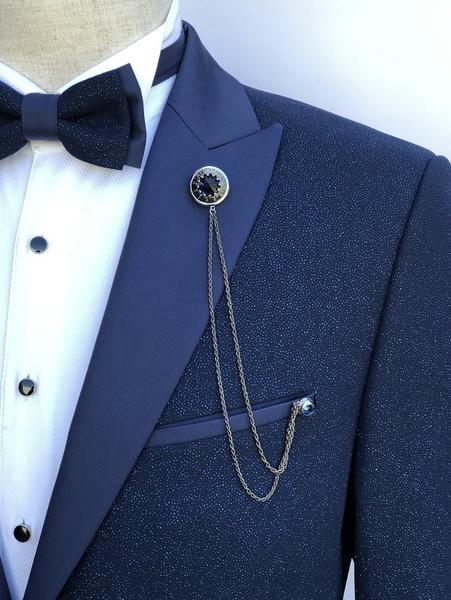 A single pin that is usually placed towards the top of the tie is small and elegant for every style and not that noticeable. Perfect if you don’t like flashy style but still want a little pop to your wardrobe these are perfect for you! Usually secured with a clasp, chain in the back, or using a long pin they are simple and fast to use.