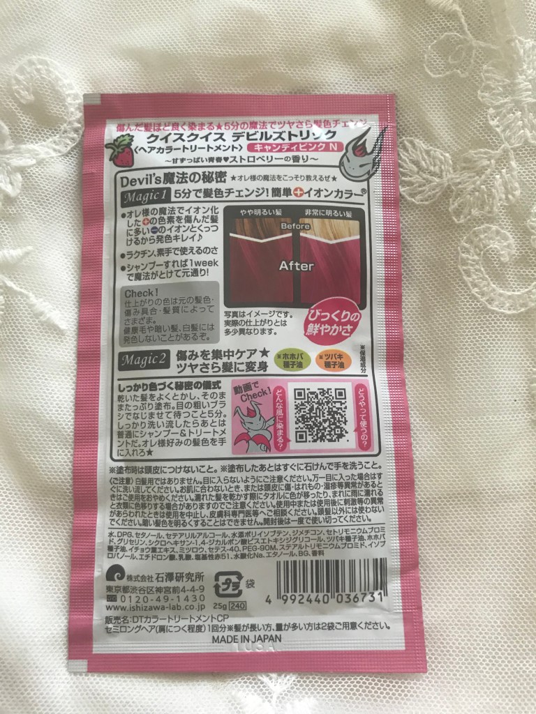 Temporary colored hair dye by Devil’s Trick (Candy Pink color)