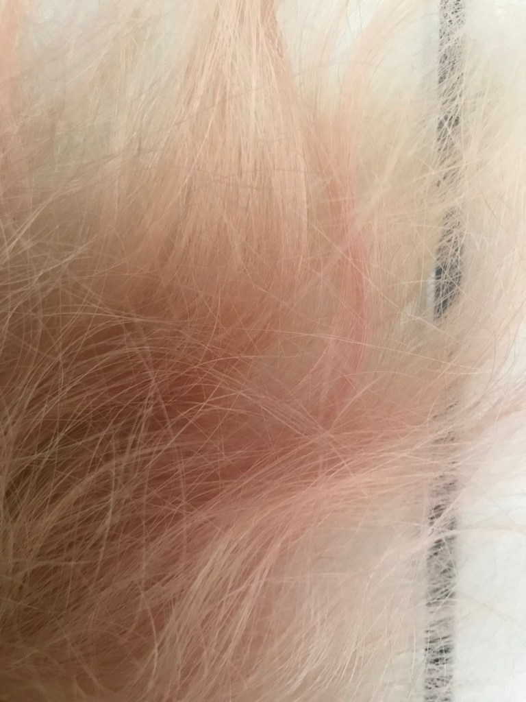 If you have blonde hair, bleaching is not necessary. If your hair is darker the dye will be harder to see without bleaching it first. Please wear gloves! (For some reason they advertise that you can do it with your hands, and I tried… what a mistake that was! It was a pain to remove pink from my fingers). Drape a towel around your shoulders or wear a shirt that can get stained. Separate hair into manageable pieces. Coat the desired hair well. Leave in for 5 minutes and wash out. Condition the ends and style as usual. Do not keep the product! Throw away when finished.
