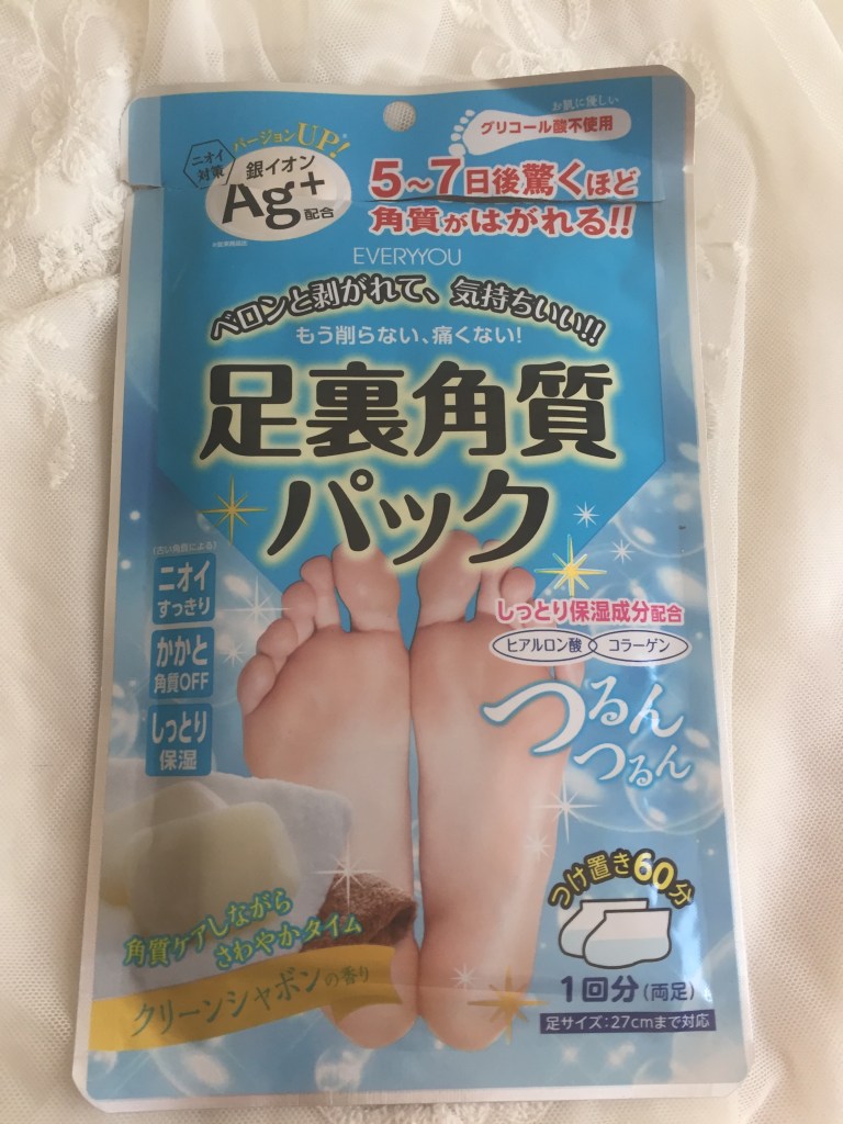 (Product 1: by EVERYYOU Doshisha soap scent, Silver ion AG+, Hyaluronic Acid and Collagen Foot Mask) (700 yen/ about $7)