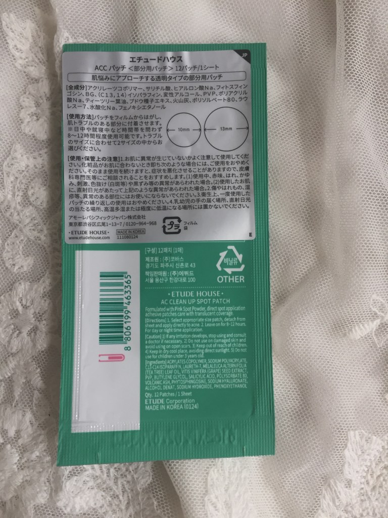 AC Cleanup Spot Patch for acne treatment by Etude House (12 patches/500 yen/ about $5)