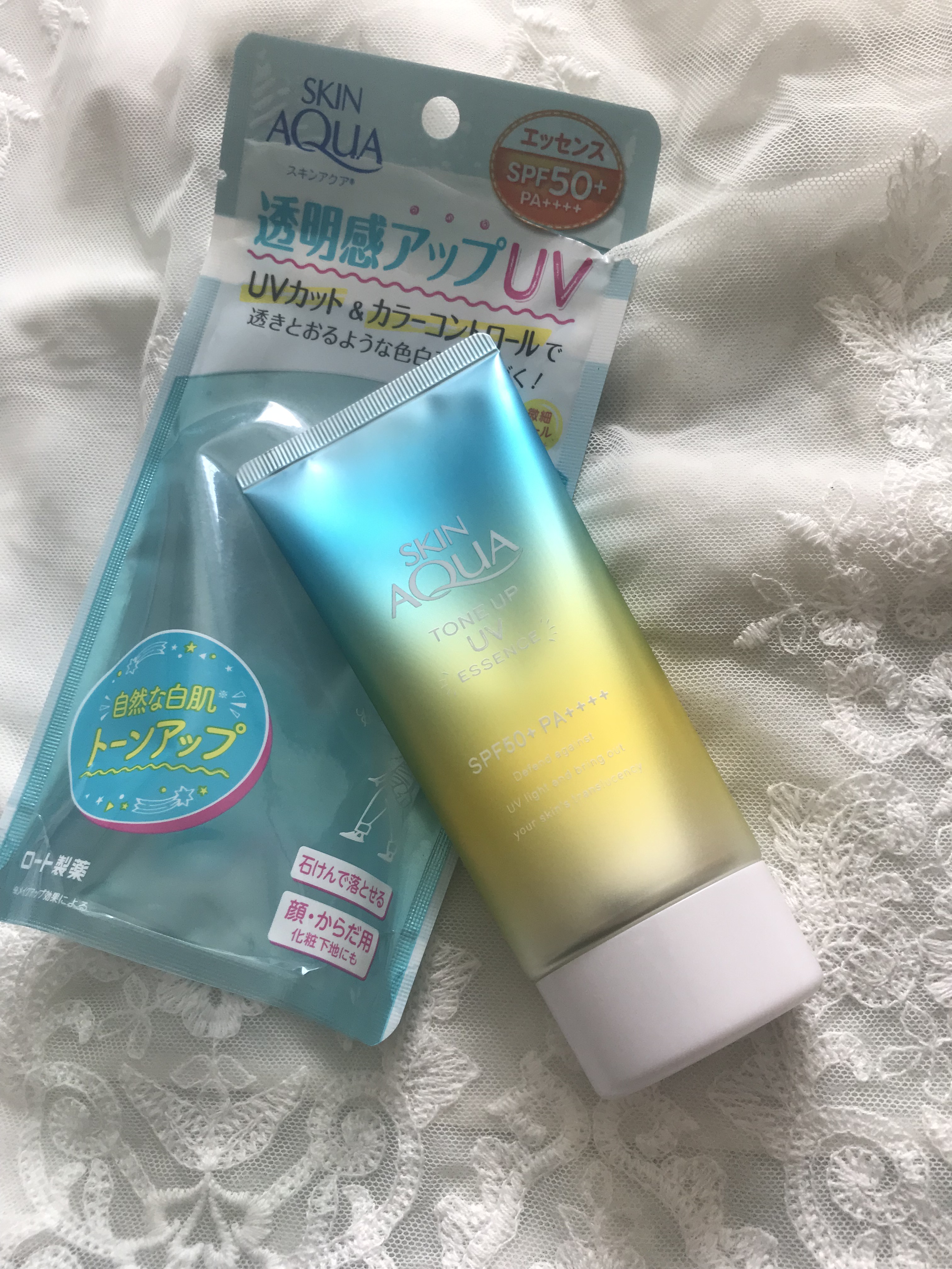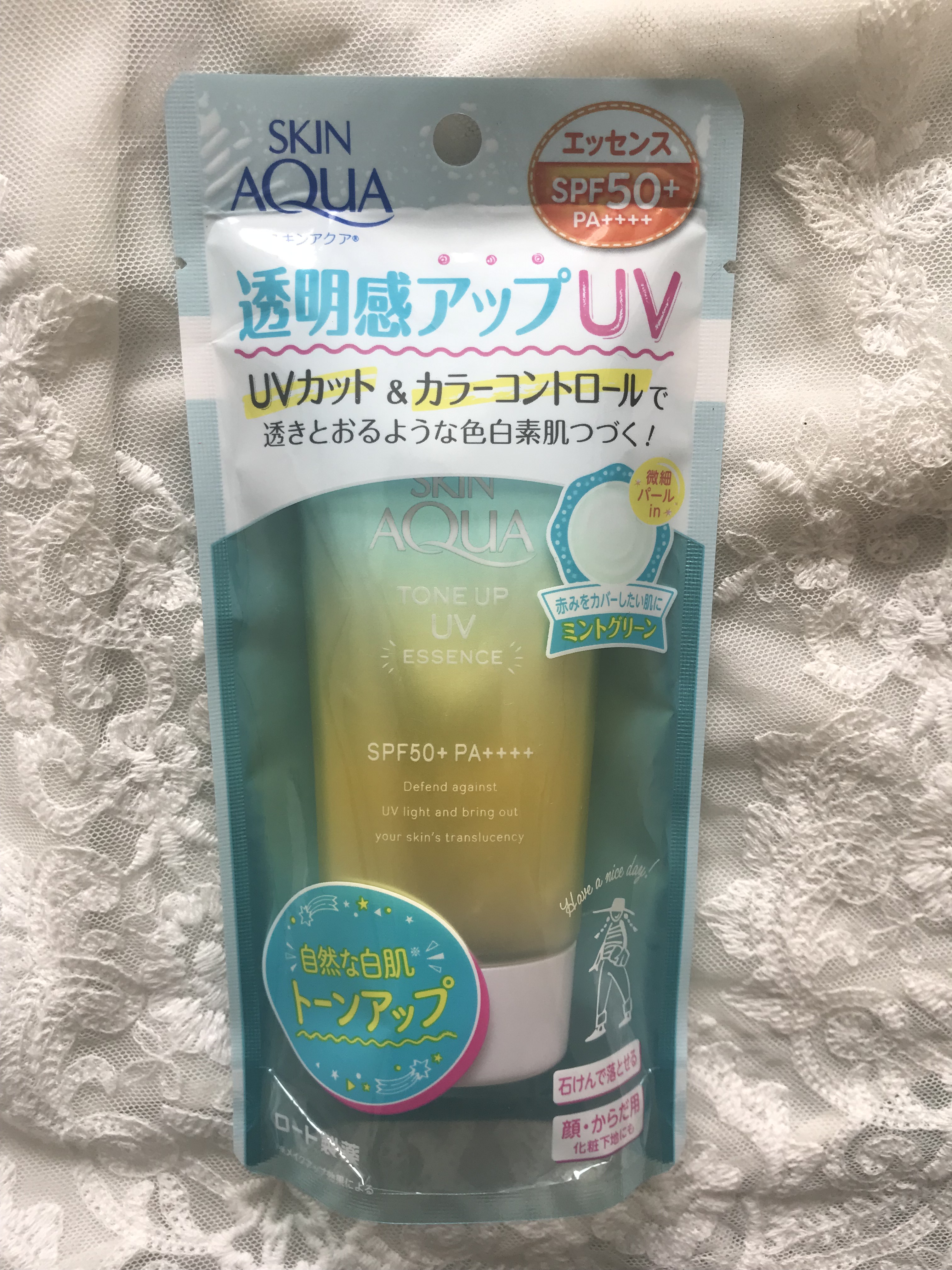 Brand: Skin Aqua Toneup UV Essence SPF 50+ (Mint green)